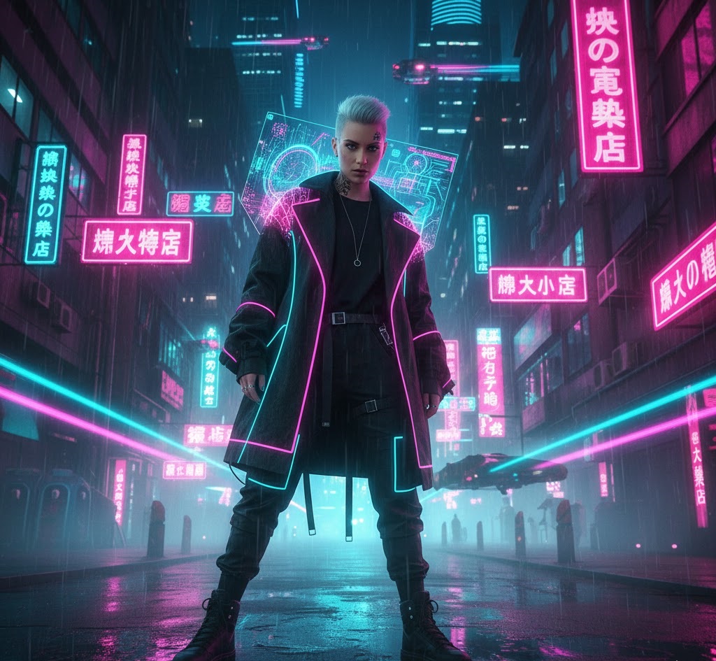 Channel your inner cyberpunk with electric neon accents against dark tactical wear. Think black cargo pants with LED strips, a cropped jacket with holographic panels, and neon-bright accessories. This look screams urban dystopia meets high-tech rebellion.