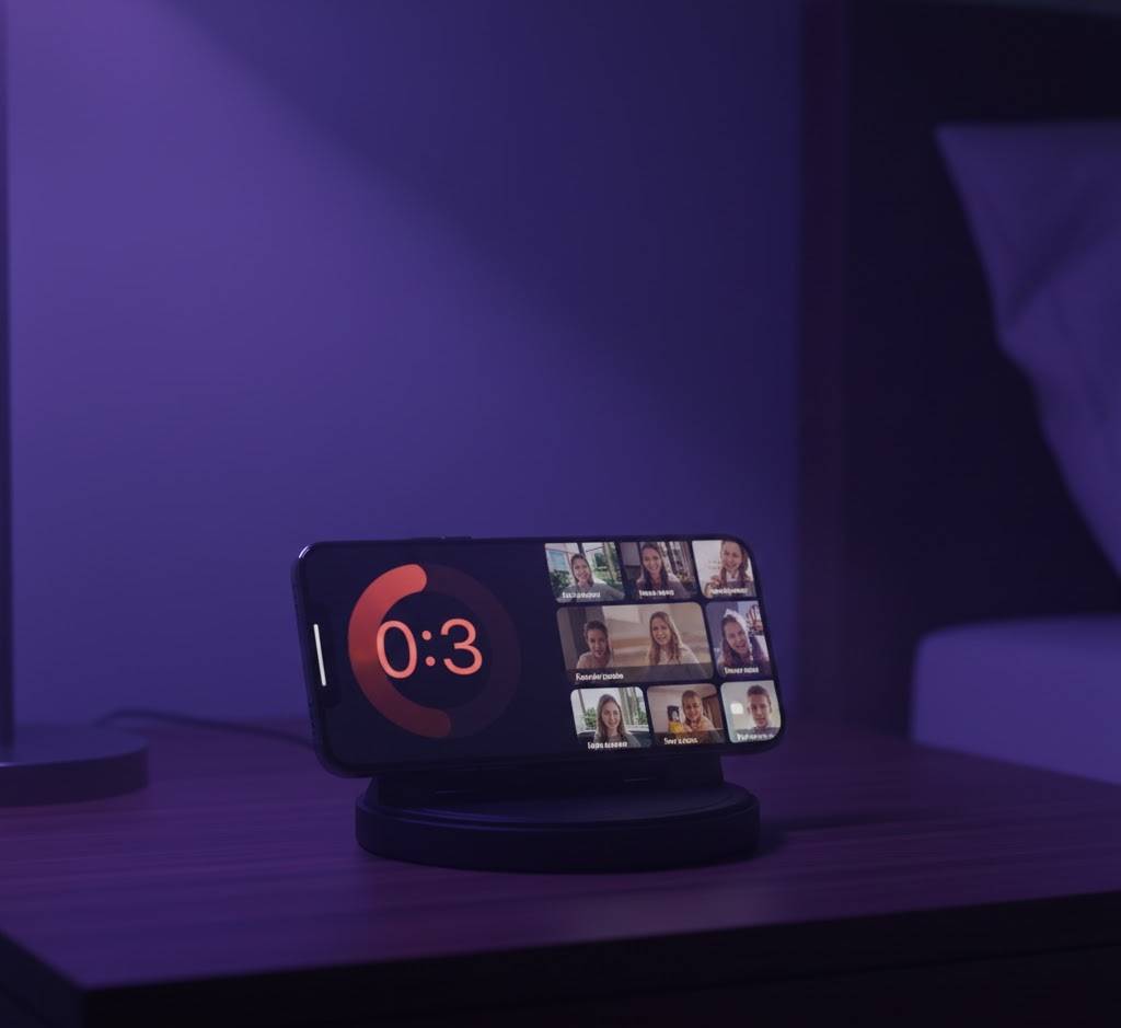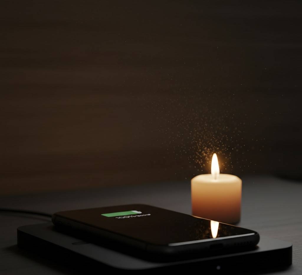 È completamente nero opaco, senza loghi invadenti, spesso solo 6,8 mm. Sul comodino sembra un sottobicchiere di design invece di un gadget. Di notte si illumina solo con una piccolissima striscia LED che respira lentamente: verde se sta caricando, bianca quando è pieno, spenta quando hai tolto il telefono. Niente luci fastidiose che ti svegliano.