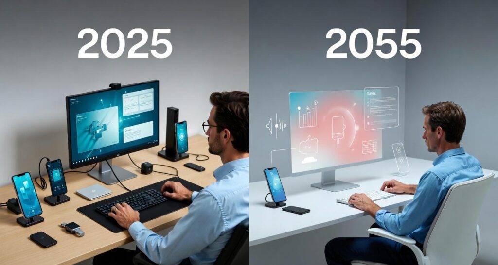 By 2055, technology disappears into the background. It anticipates your needs, adapts to your preferences, repairs itself, and improves constantly without requiring your input.