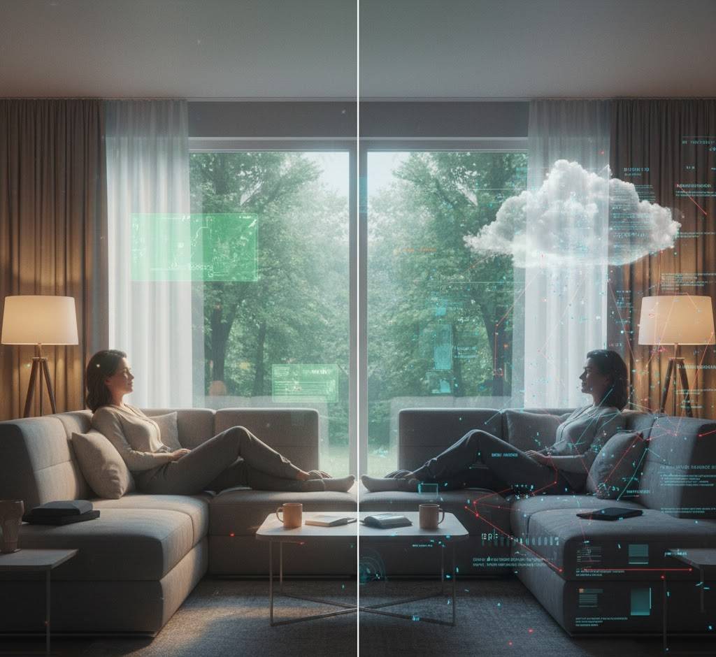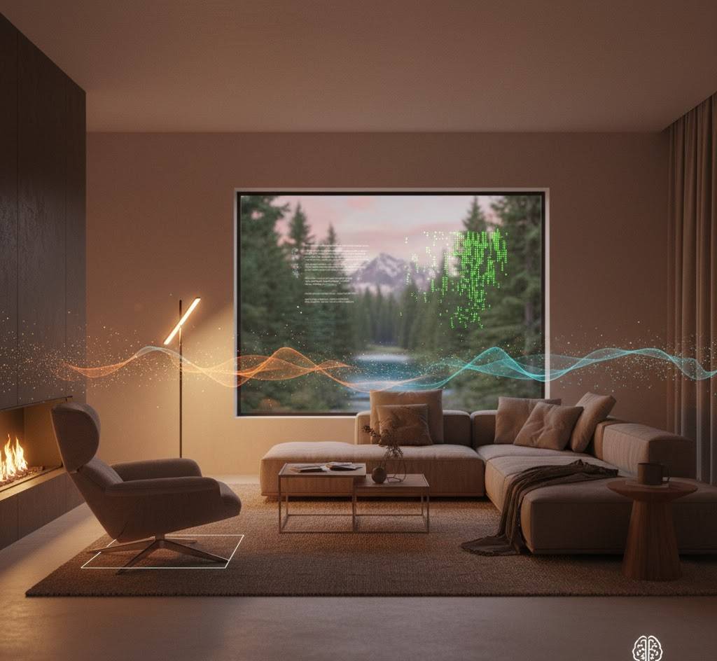 The AI notices you tend to read longer when the lamp is at 67% brightness rather than 70%. It adjusts. It detects that you sleep better when temperature drops 0.8 degrees around 2 AM. It schedules it. It realizes you’re more productive when you can see green space, so windows that face brick walls gain holographic nature views.