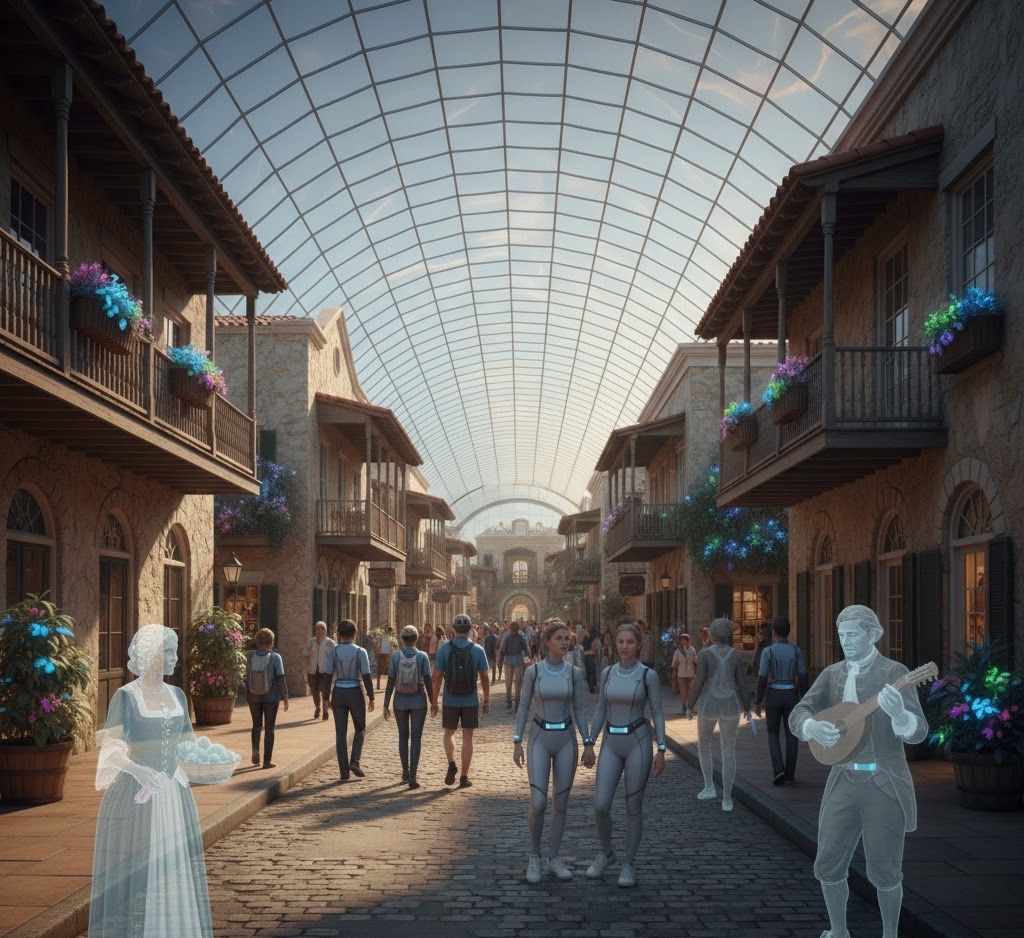 At “Temporal Tastes,” the city’s most innovative restaurant, your meal is synchronized with immersive AR experiences. Enjoy a 1740s Spanish feast while dining room projections transport you to a colonial governor’s banquet. The food is created using both historical recipes and lab-grown proteins that perfectly replicate period-accurate flavors without environmental impact.