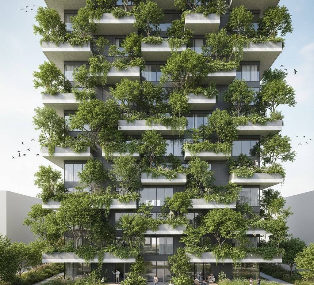 Tomorrow’s towers: Living structures where every balcony is a garden, every facade a vertical farm, every rooftop a park.